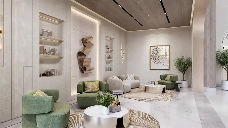 The architectural language of each tower embraces refined minimalism, inspired by the timeless elegance of Italian design. Every element is meticulously curated, where modernity and nature blend effortlessly through clean lines, balanced proportions, and open plan layouts. The residences are designed for seamless functionality and everyday comfort, complemented by shared lifestyle amenities that foster a sense of community. In most towers, grand double height lobbies welcome residents with an atmosphere of understated luxury, highlighted by marble finishes and sophisticated detailing.