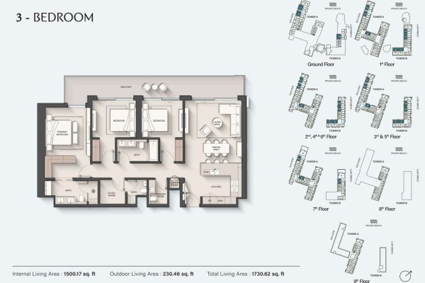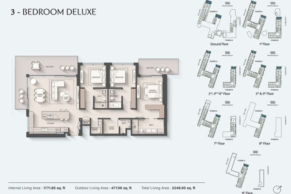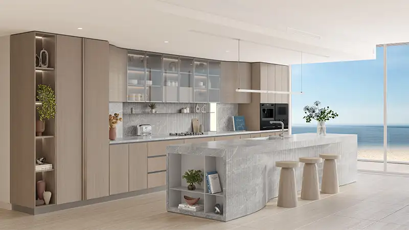 A diverse range of residences has been meticulously planned, with interiors that feel both spacious and welcoming. Open-plan layouts enhance the sense of space, while living areas are thoughtfully arranged to include elegant seating zones, dining spaces, and modern open kitchens with ample storage. These airy interiors are bathed in natural light throughout the day, creating an ideal setting for relaxation or family gatherings. Expansive balconies extend the living experience outdoors, allowing residents to enjoy refreshing sea breezes, soothing ocean sounds, and uninterrupted views of the coastline all within the serene surroundings of Dubai Islands.