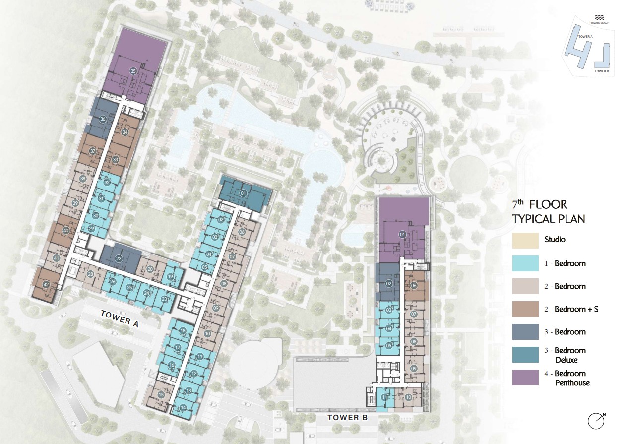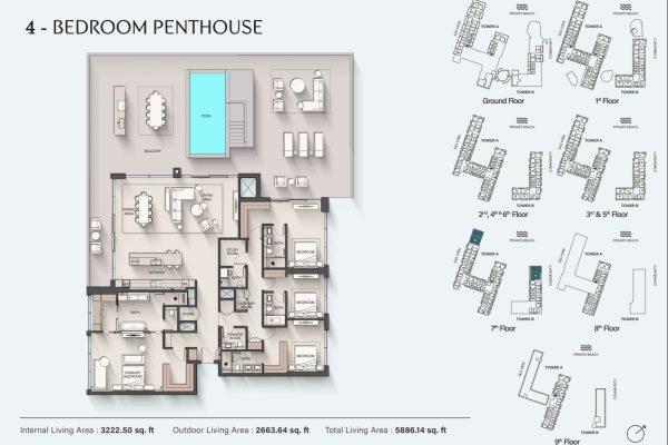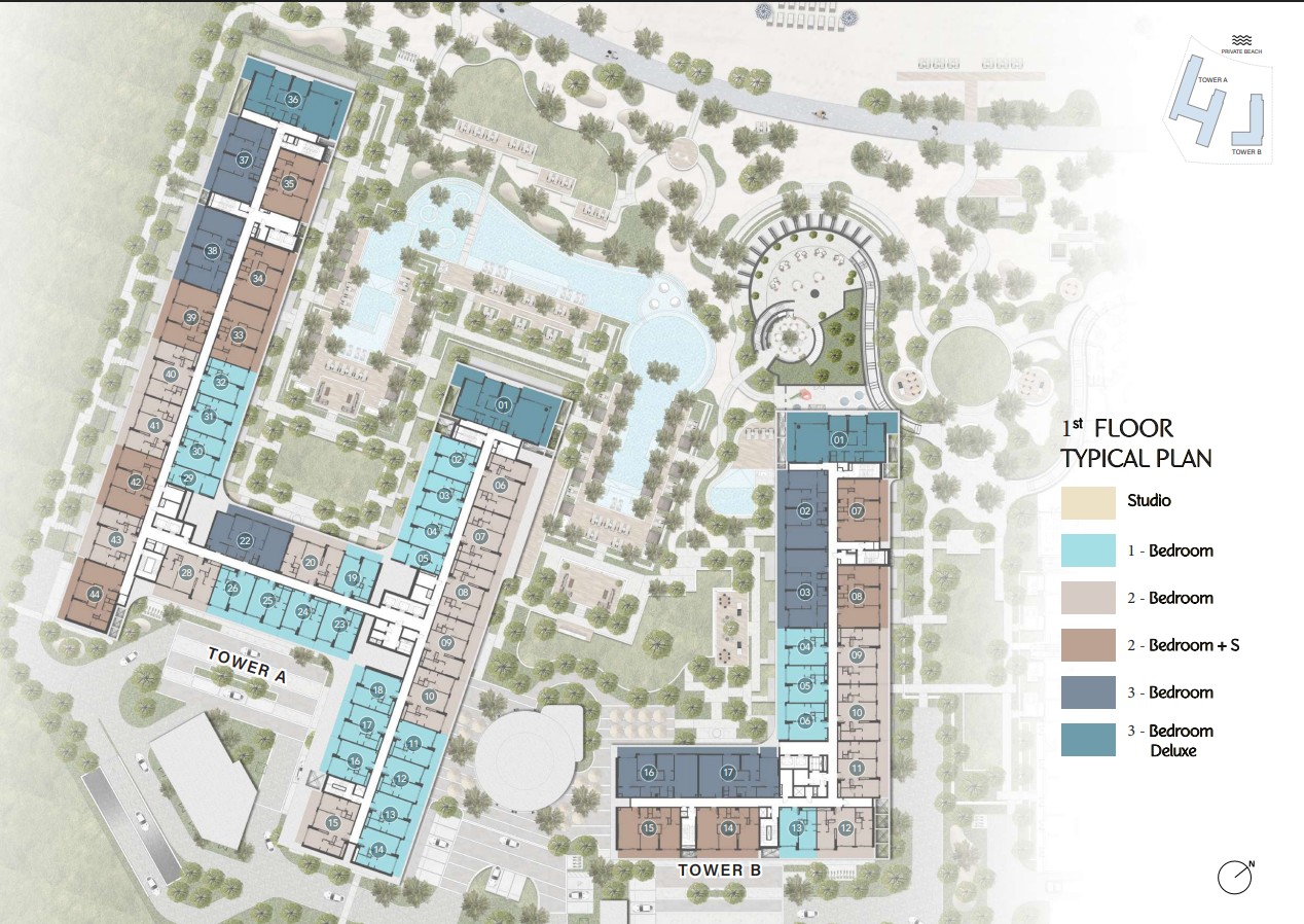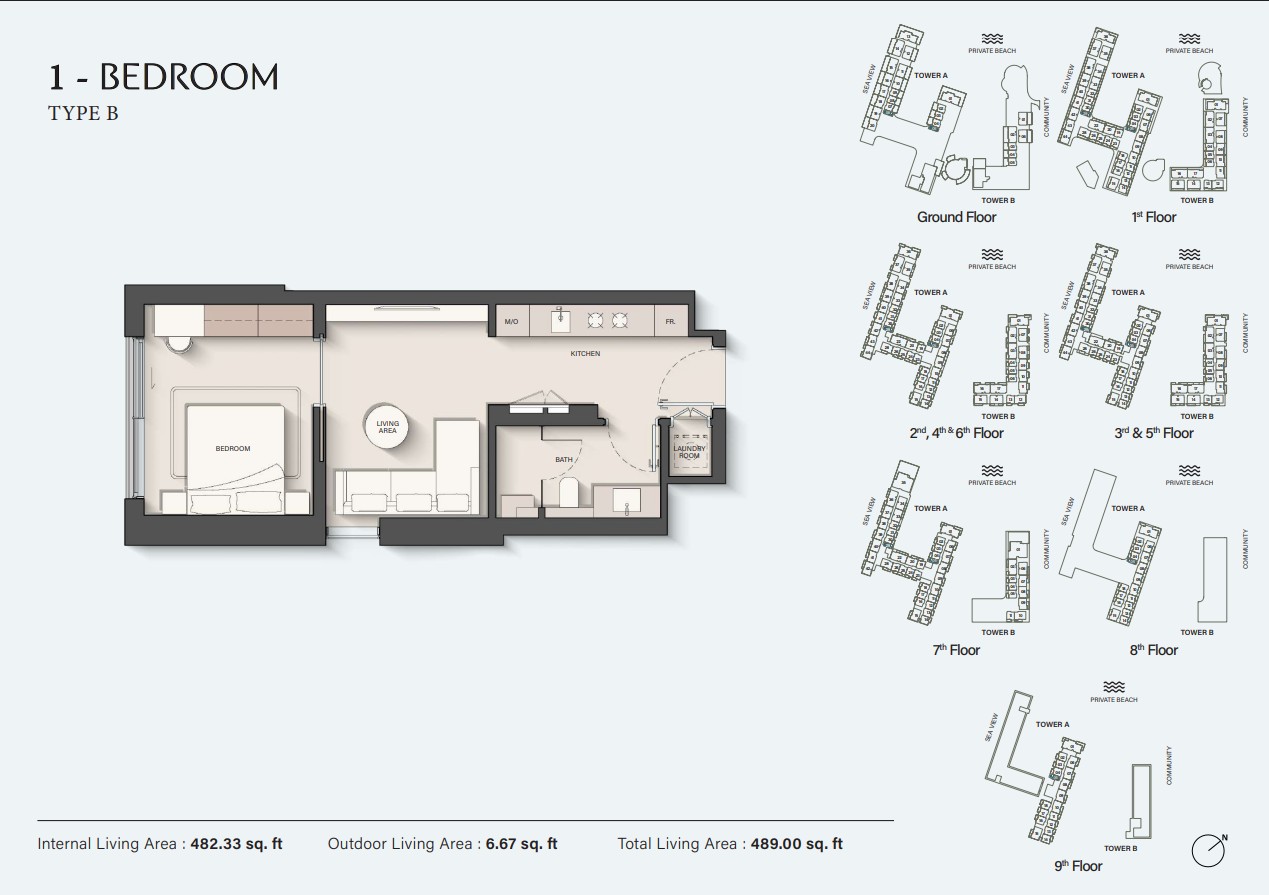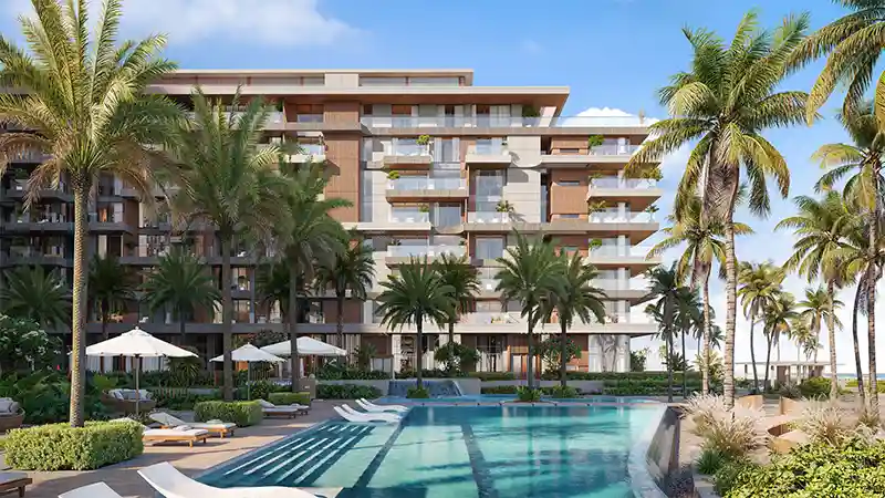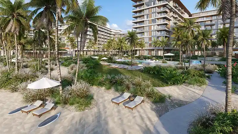 Designed with the signature contemporary approach of Ellington Properties, this inaugural release introduces the first residential tower. Framed by lush palm trees and verdant landscapes, the development stretches gracefully toward soft beige sands along the coastline. The architecture reflects understated sophistication, featuring a minimalist and fluid design language. Clean lines, refined surfaces, expansive balconies, floor-to-ceiling windows, and sleek glass façades define the structure, ensuring a seamless visual connection between the interiors and panoramic views of the beach, sparkling sea, and vibrant island environment.