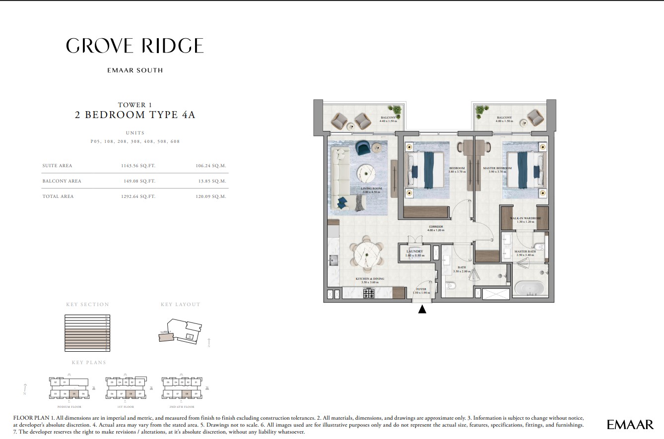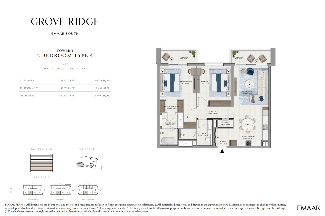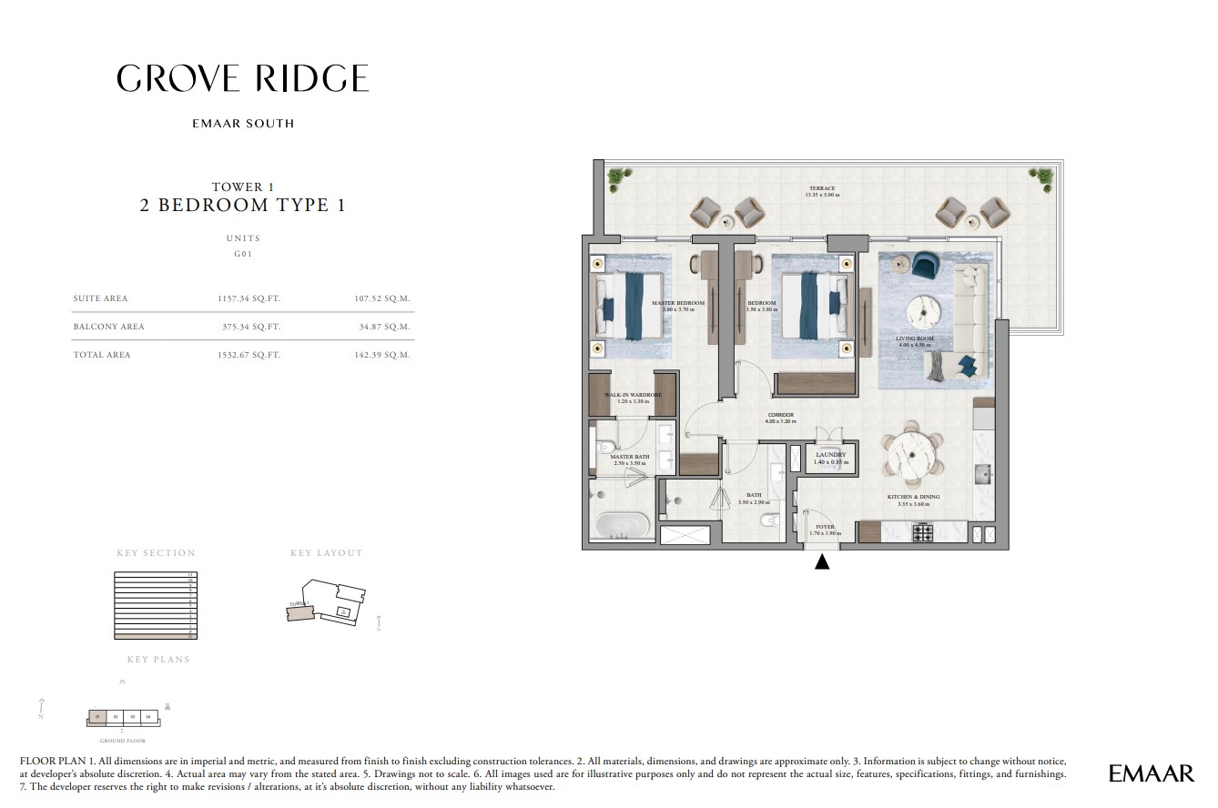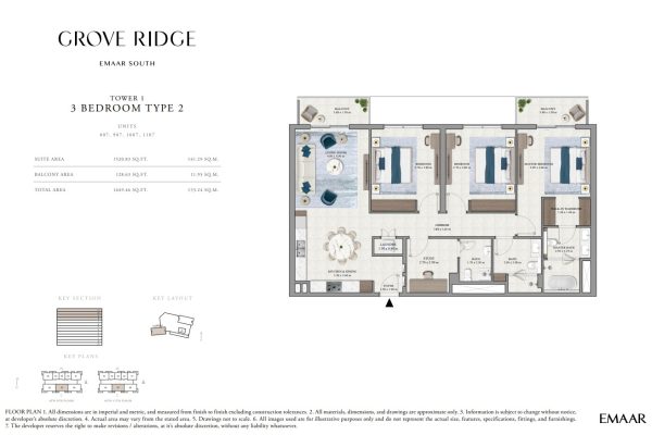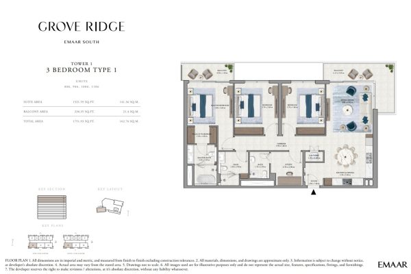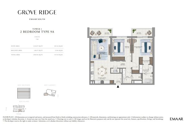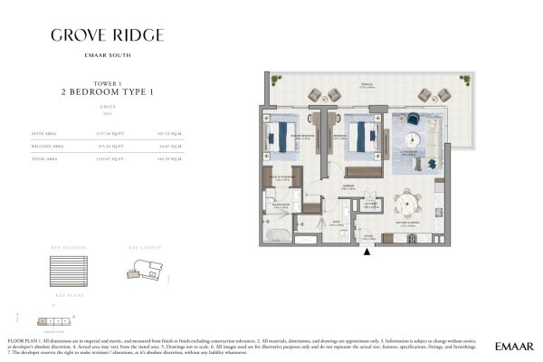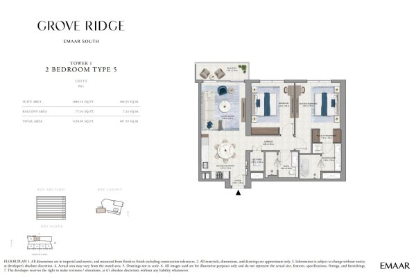 Grove Ridge at Dubai South by Emaar Properties introduces a progressive vision of urban living within a golf inspired community, offering a refined selection of 1 to 3-bedroom apartments. This thoughtfully designed residential development reflects Emaar’s commitment to comfort, functionality, and sustainable living, expressed through elegant architecture, premium materials, and meticulous attention to detail. Set within a flourishing gated enclave, the community is enriched with landscaped parks, open green spaces, and interconnected pedestrian walkways, creating a serene and walkable environment that enhances everyday living.