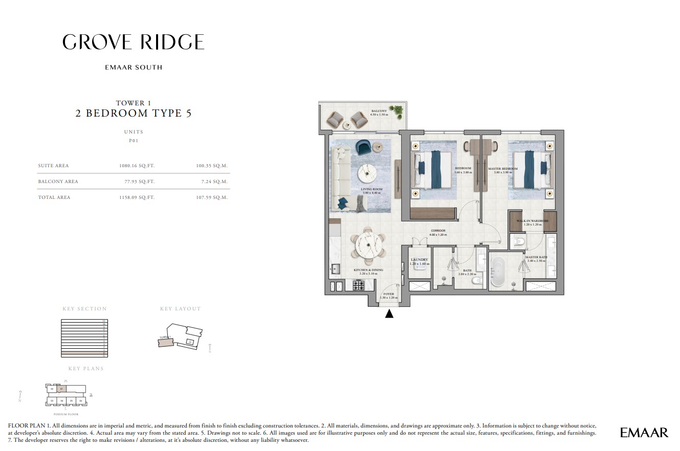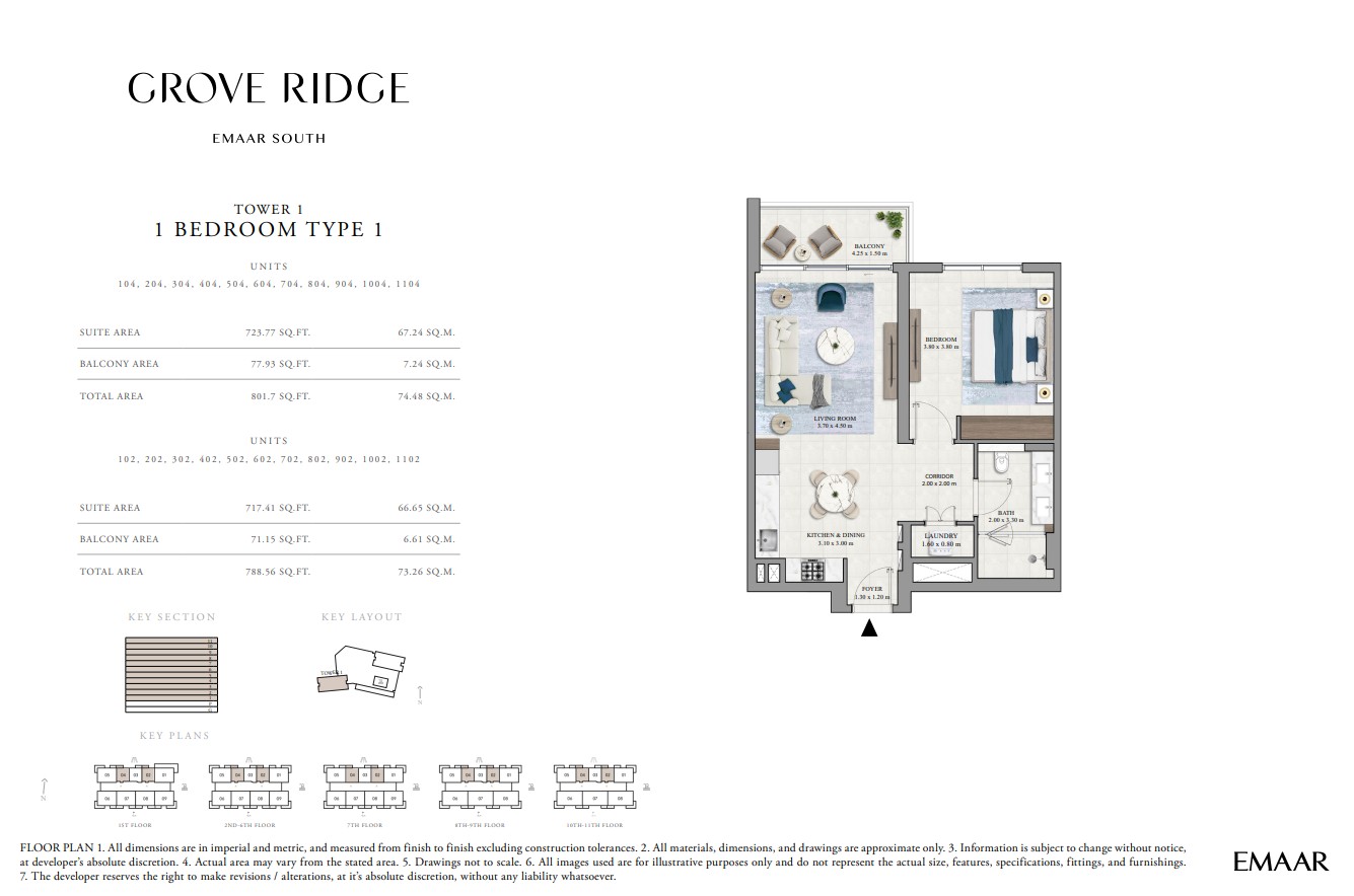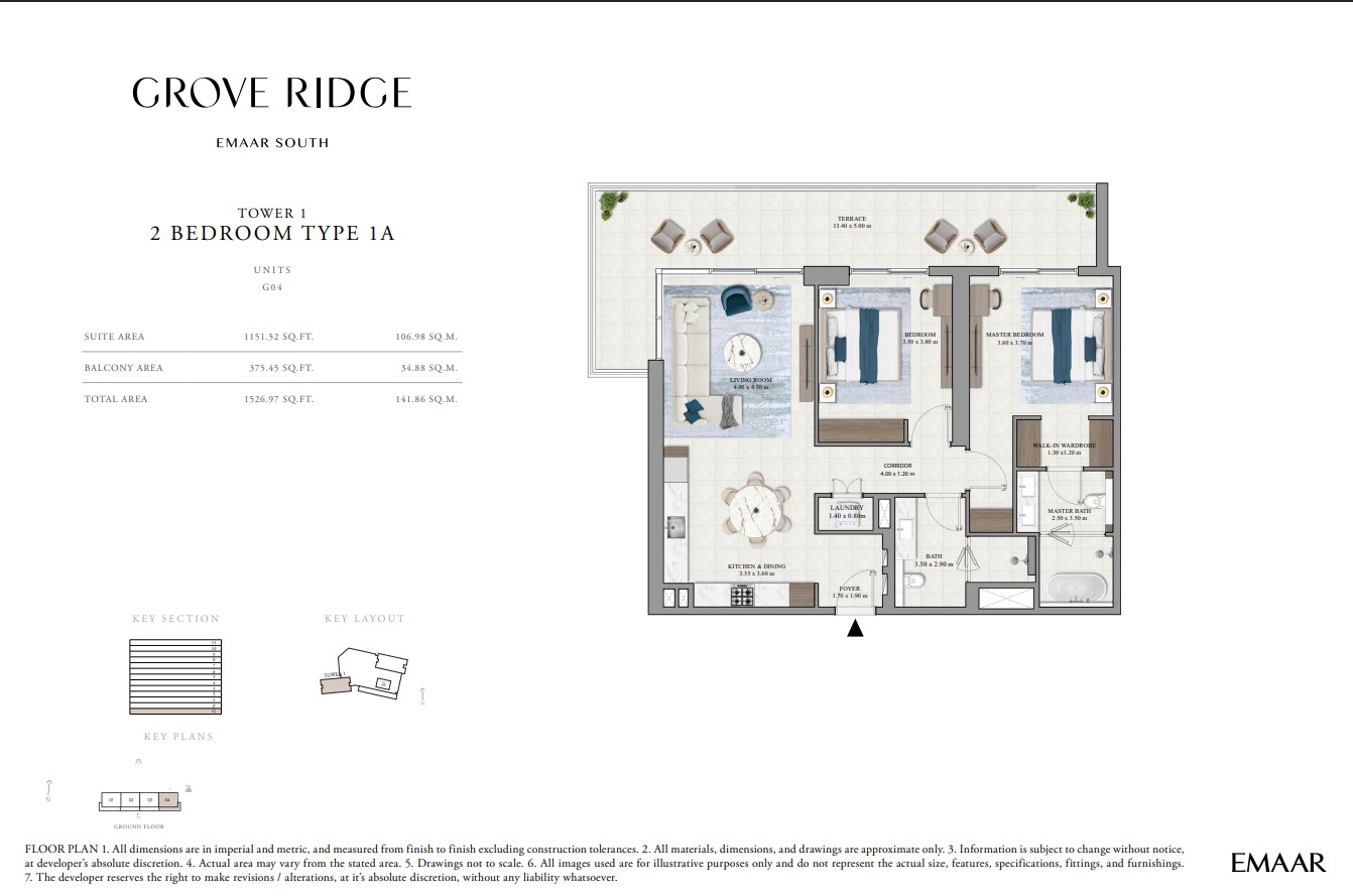 Grove Ridge at Dubai South by Emaar Properties introduces a progressive vision of urban living within a golf inspired community, offering a refined selection of 1 to 3-bedroom apartments. This thoughtfully designed residential development reflects Emaar’s commitment to comfort, functionality, and sustainable living, expressed through elegant architecture, premium materials, and meticulous attention to detail. Set within a flourishing gated enclave, the community is enriched with landscaped parks, open green spaces, and interconnected pedestrian walkways, creating a serene and walkable environment that enhances everyday living.