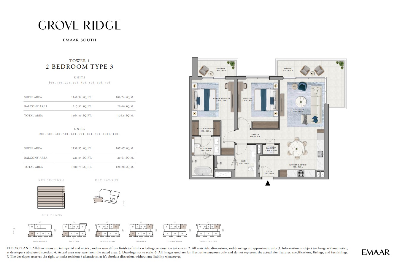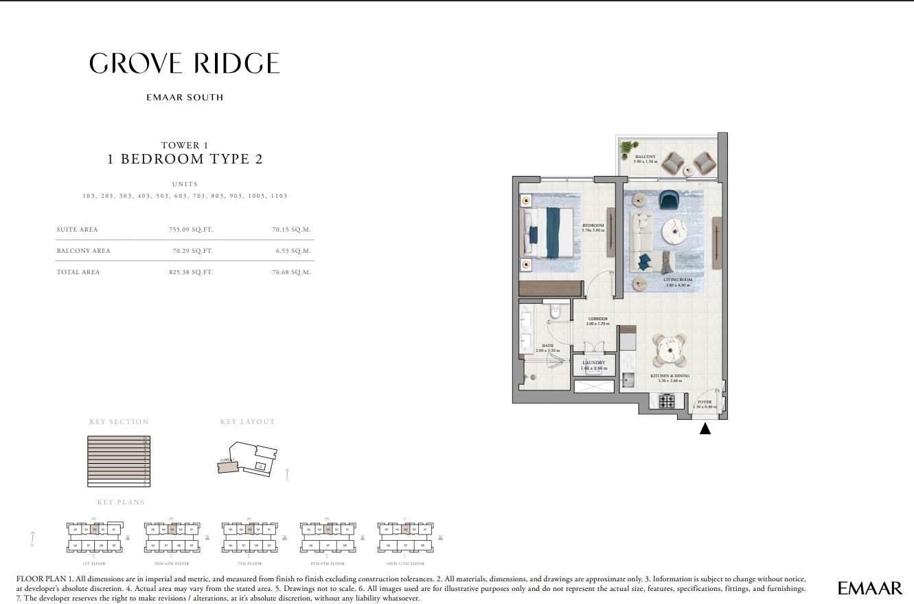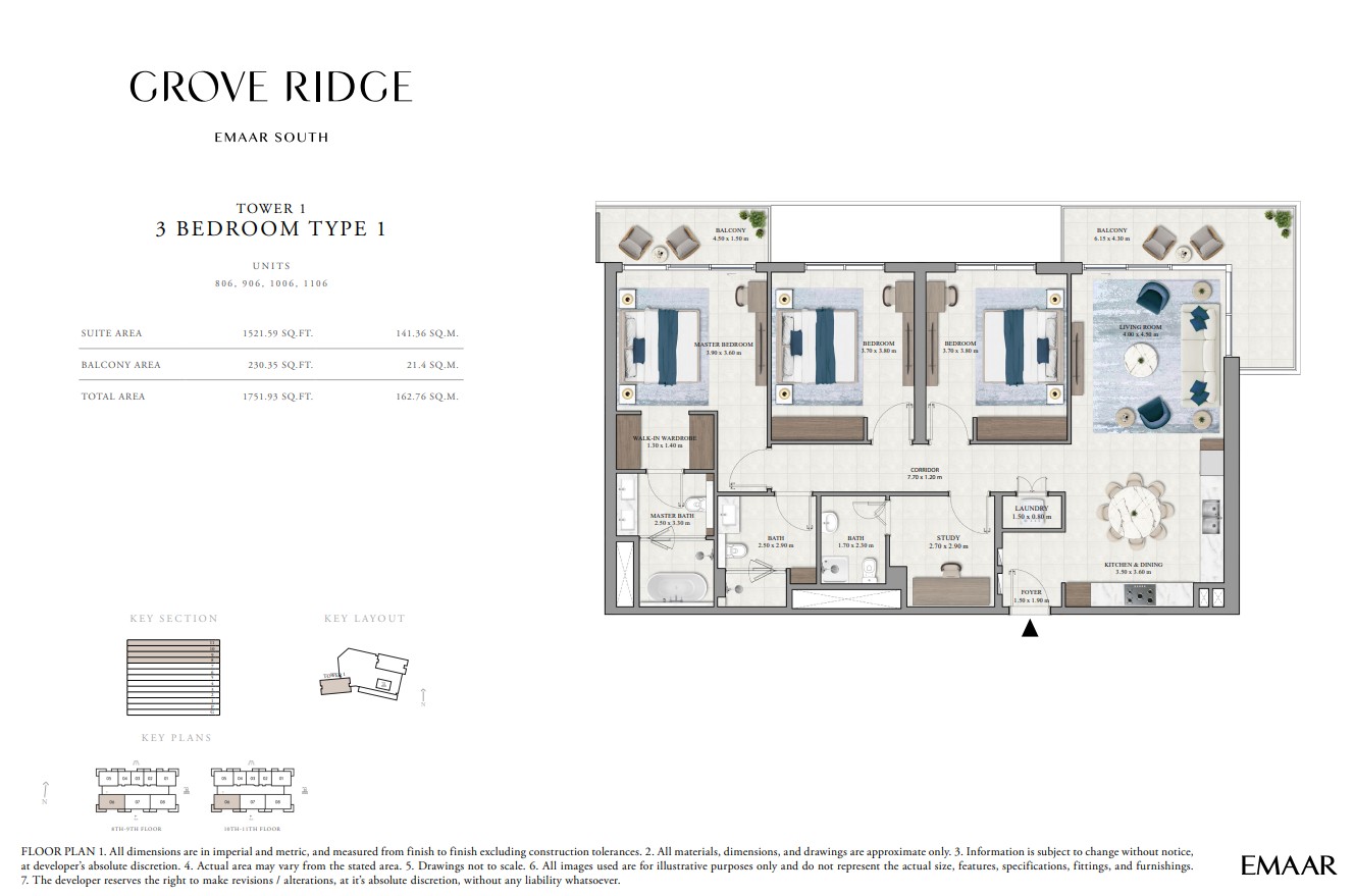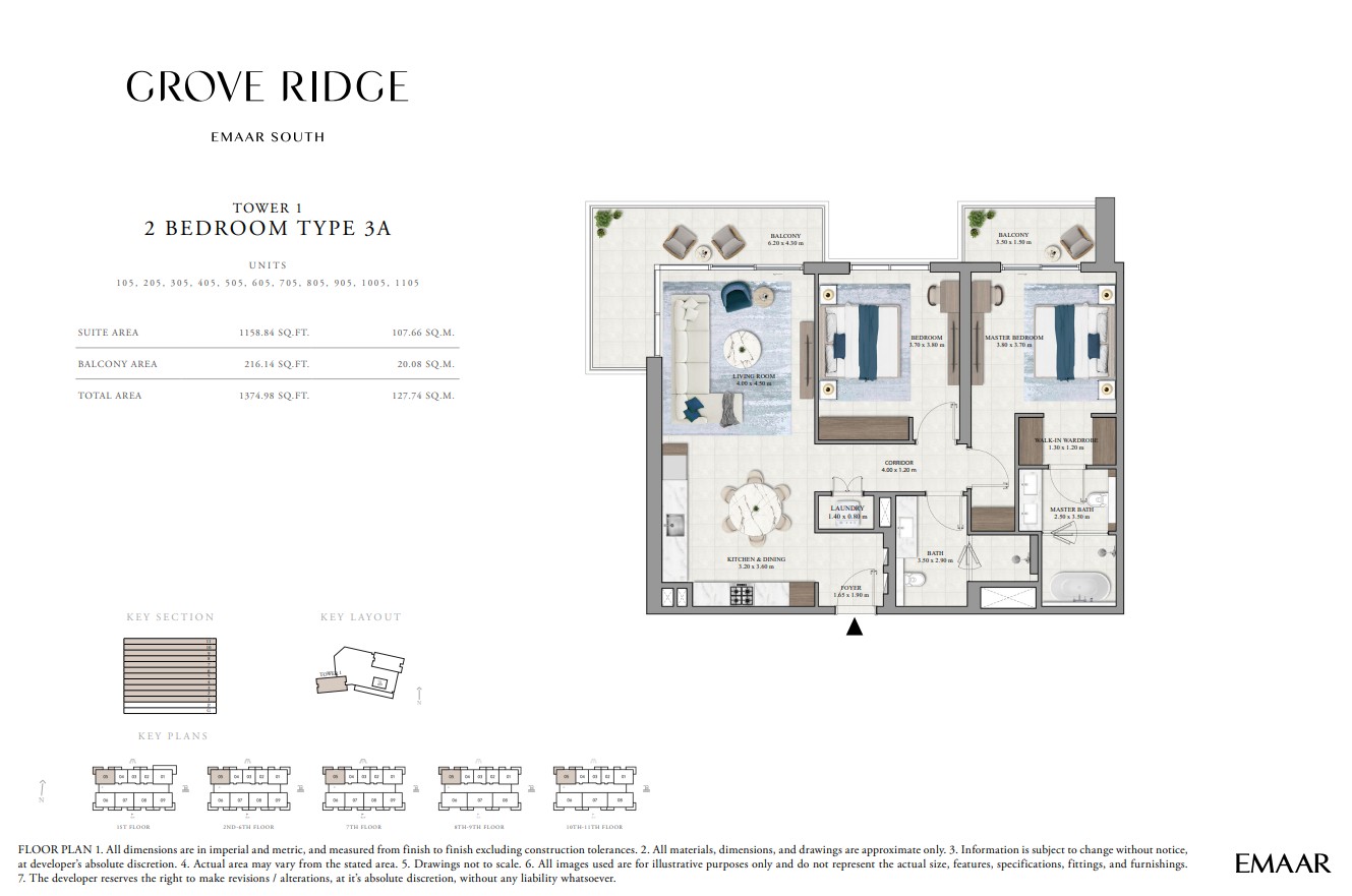 Grove Ridge at Dubai South by Emaar Properties introduces a progressive vision of urban living within a golf inspired community, offering a refined selection of 1 to 3-bedroom apartments. This thoughtfully designed residential development reflects Emaar’s commitment to comfort, functionality, and sustainable living, expressed through elegant architecture, premium materials, and meticulous attention to detail. Set within a flourishing gated enclave, the community is enriched with landscaped parks, open green spaces, and interconnected pedestrian walkways, creating a serene and walkable environment that enhances everyday living.