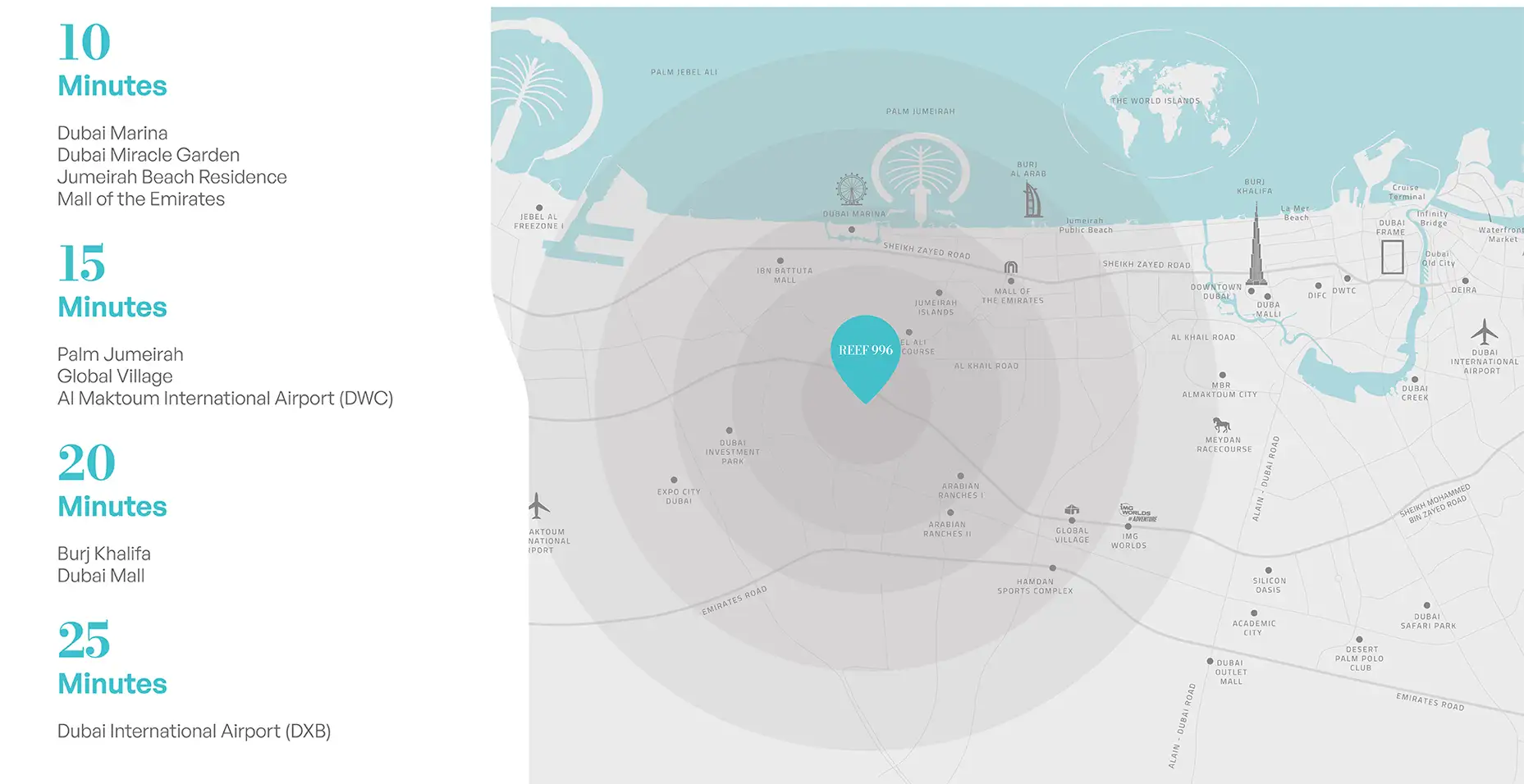 Positioned within the International Media Production Zone (IMPZ), a freehold community dedicated to media enterprises and modern suburban living, Reef 996 stands as a refined symbol of architectural quality and intelligent design. The development is surrounded by evolving infrastructure and world-class community facilities, making it an ideal address for progressive urban lifestyles.
