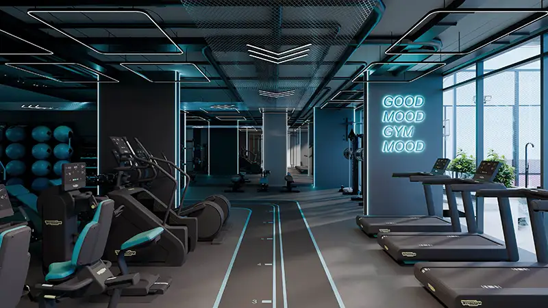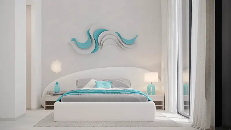 The arrival experience is equally impressive, beginning with a grand lobby that is spacious, naturally illuminated, and thoughtfully curated to create a welcoming atmosphere. Elegant detailing and contemporary finishes establish a refined and serene tone, inspired by the natural beauty of ocean reefs through calming turquoise and white hues. Wide, well planned corridors further enhance accessibility while maintaining a modern and inviting aesthetic.