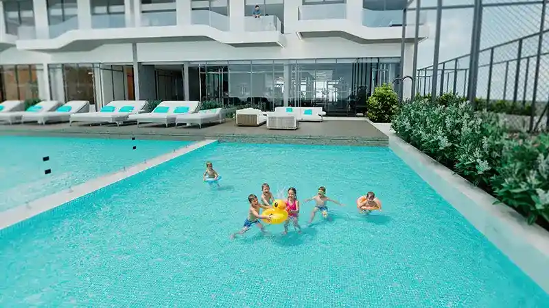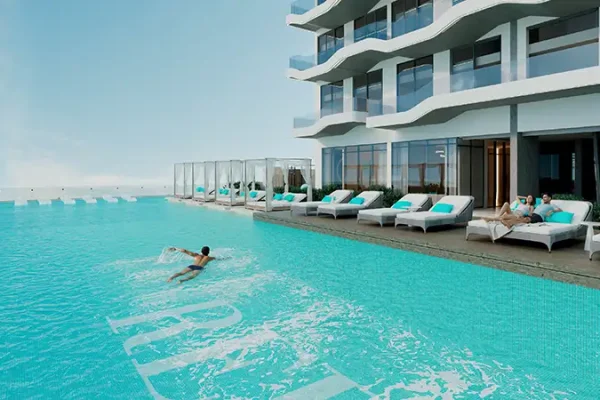 Defined by Reef’s signature architectural language, the tower comprises a basement, ground level, three podiums, and 20 residential floors. Its striking façade is inspired by fluid sea wave forms, accentuated by expansive glass windows that maximise light and views. Each residence is elevated by Reef’s globally patented outdoor cooled sunken balconies, allowing residents to enjoy panoramic outdoor living even during Dubai’s warmer months. In addition, the development introduces the world’s first Outdoor Cooled Garden Lounges shared spaces designed for comfort, relaxation, and meaningful social moments amidst landscaped greenery.