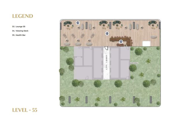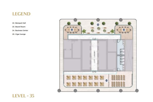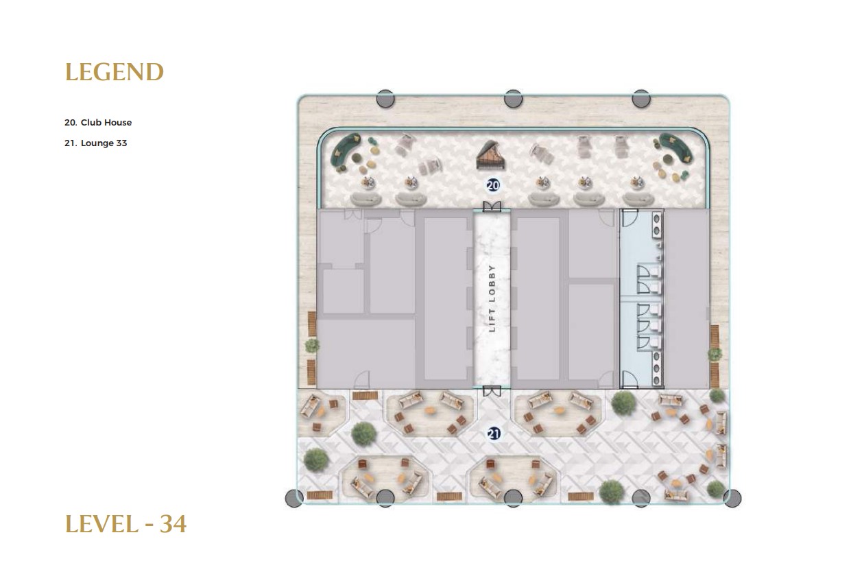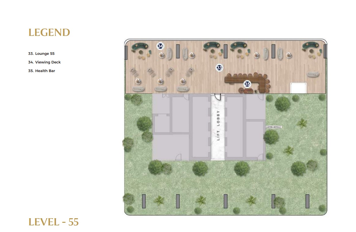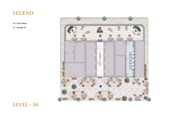 Multiple levels of the tower are dedicated to world-class lifestyle and business amenities. Level 9 offers a serene Zen garden, cricket pitch, padel court, urban park, jogging track, and a podcast studio, supporting balance between work and recreation. Levels 33 to 35 are designed as elevated leisure and networking zones, featuring a sky pool, fully equipped gym, Lounge 33, clubhouse, multipurpose hall, and meeting rooms ideal for wellness, relaxation, and both formal and informal engagements.