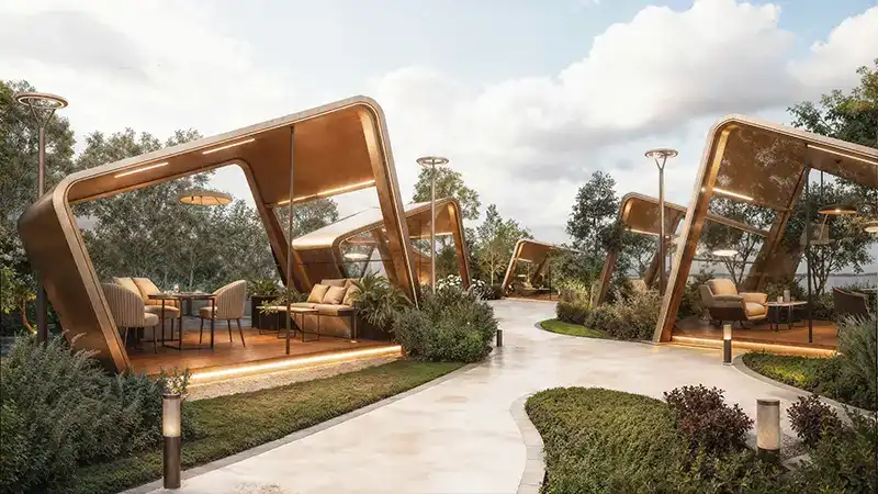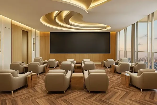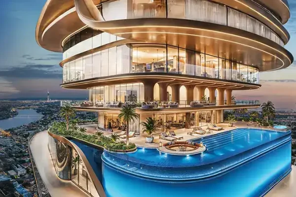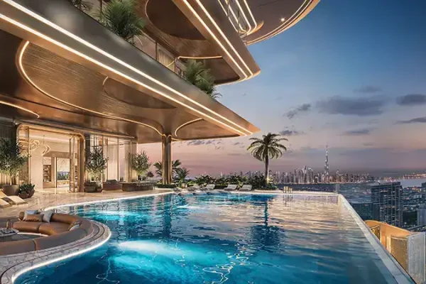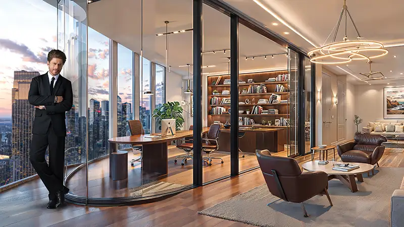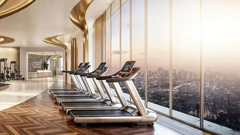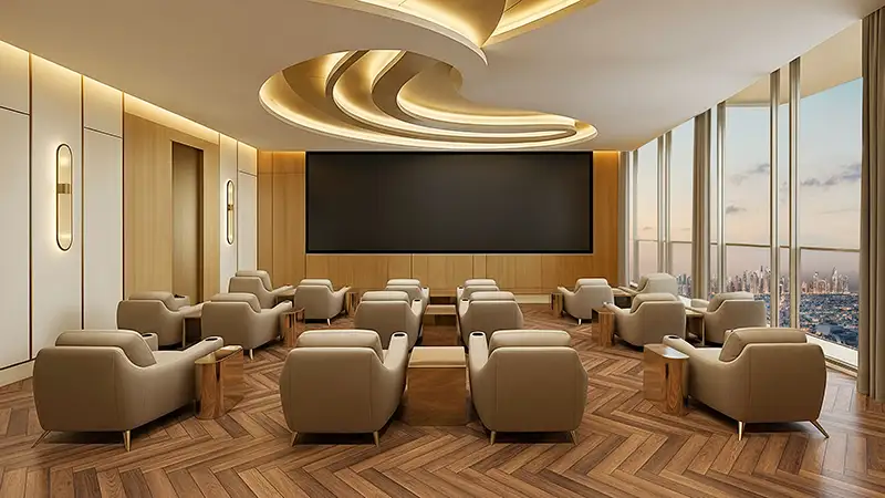 Soaring 55 storeys into Dubai’s dynamic skyline and crowned with an exclusive helipad at level 56, the tower makes a striking architectural statement. The ground level welcomes occupants and visitors into a double-height grand lobby, defined by expansive glass façades that flood the space with natural daylight. Bespoke lighting, refined finishes, and soft textures create an atmosphere of understated elegance. Signature features at ground level include the iconic King’s Signature Pose monument a dedicated selfie point along with valet parking, e-scooter parking, a drone docking station, and a range of thoughtfully curated conveniences.